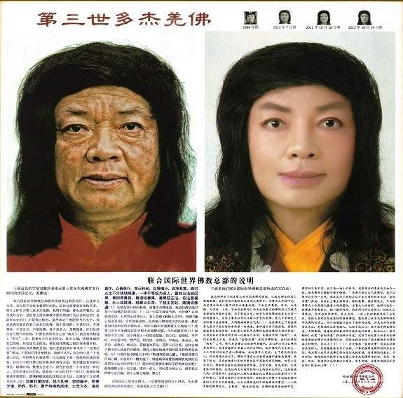 2012年,由于 南无第三世多杰羌佛 代众生担业,三个月的时间成了老人衰竭相,此时很多人见状,生了退失修行的心,于此所逼,无奈之下, 南无第三世多杰羌佛 只得在公众面前,仅用十分钟就快捷回春驱走衰竭,恢复了体力,变成比祂青少年时代更加庄严英俊的青年相貌。虽然 南无第三世多杰羌佛 说那是药物的作用,但世界上至今为止,根本就没有如此快捷返老回春、五官大换、眉毛更新、又恢复体力的药物。(见下图)